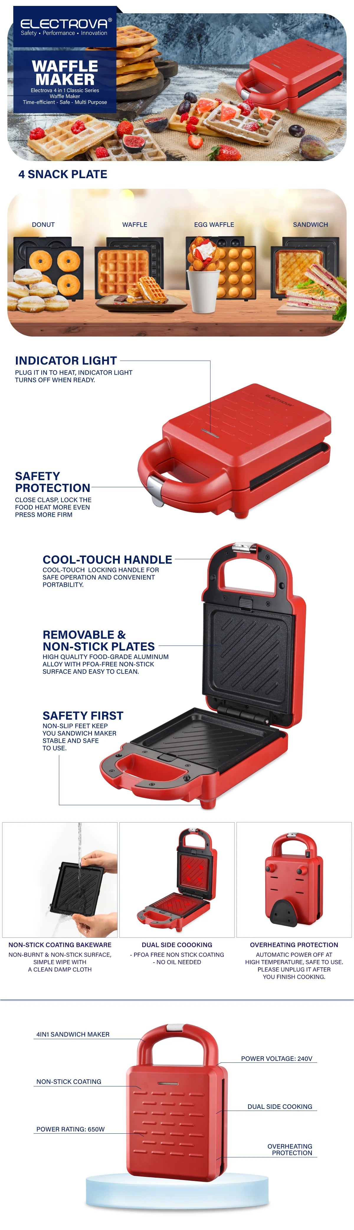 Electrova 4 in 1 Classic Series Sandwich & Waffle Maker