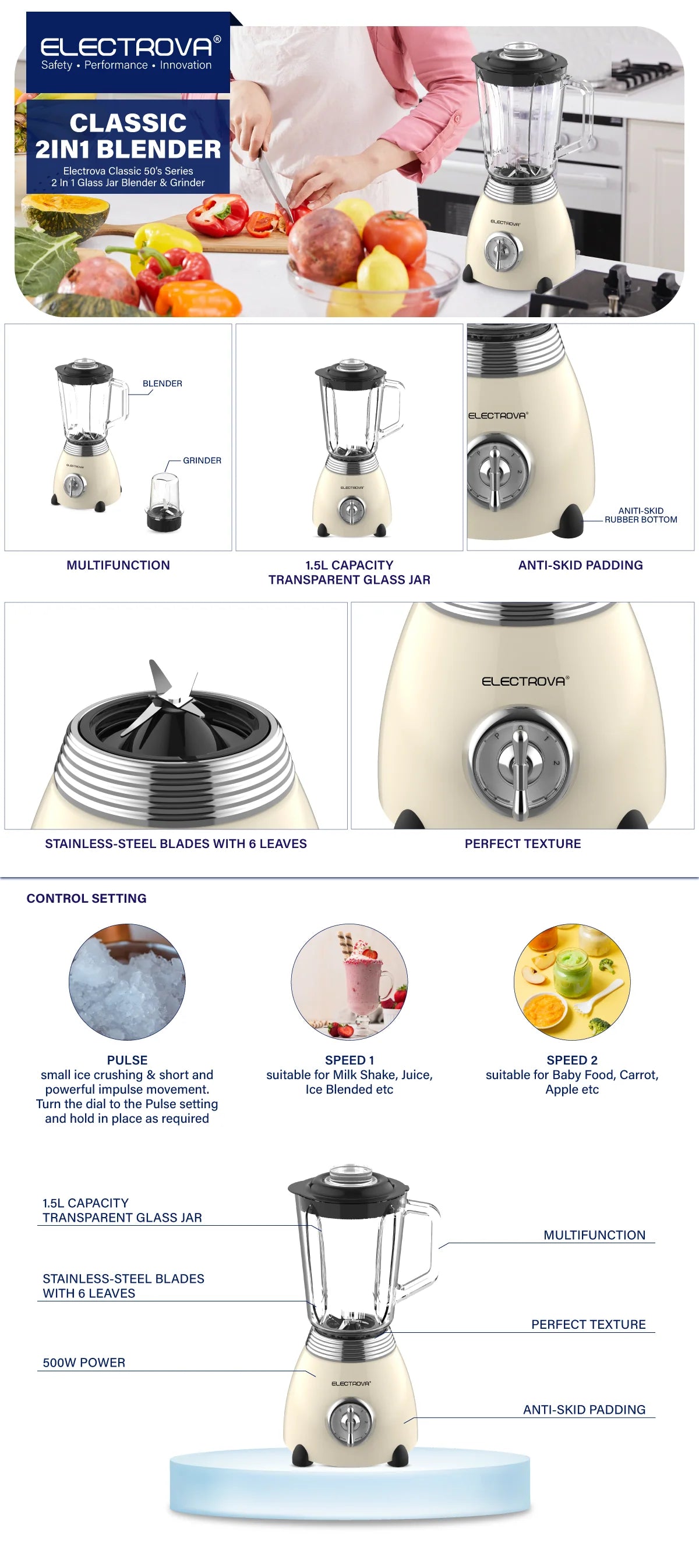 Electrova Classic 50's Series 2 in 1 Blender & Grinder