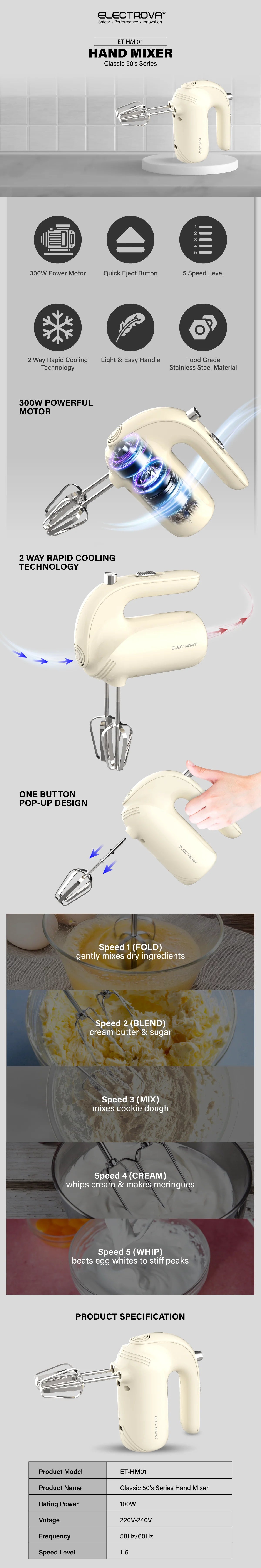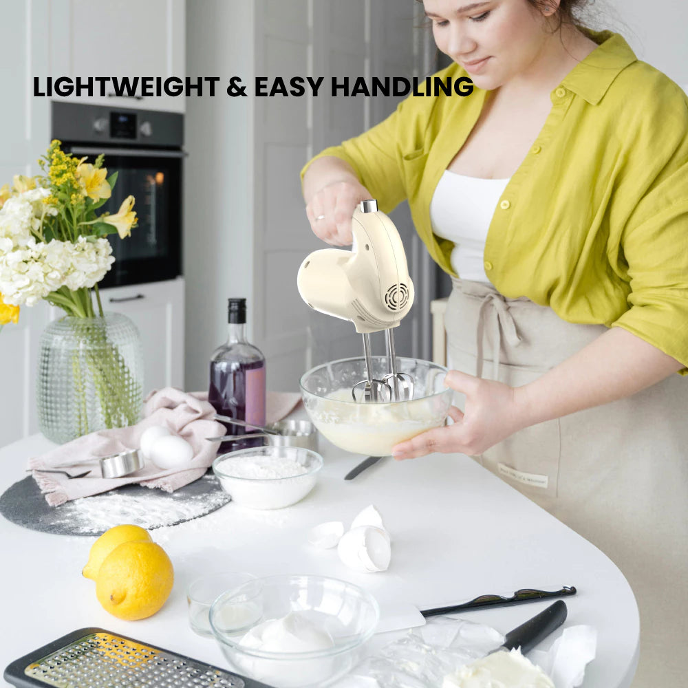 This 100W electric hand mixer is designed with five variable speed gears, making it easy to adjust for various tasks. Whether you need to mix ingredients for a delicate recipe or a tougher dough, this mixer can handle it all. Plus, the TURBO option provides an extra burst of power, perfect for when you need to mix at a faster pace than the standard speed settings..