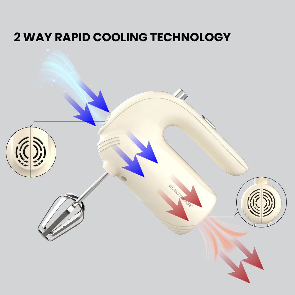 Equipped with a visualized heat dissipation window, this hand mixer prevents the motor from overheating during use, allowing it to cool down and operate at a lower noise level. This unique feature enhances the longevity and overall performance of the mixer, ensuring that it can handle all of your mixing needs. Plus, the reduced noise level makes it a more pleasant kitchen tool to use.