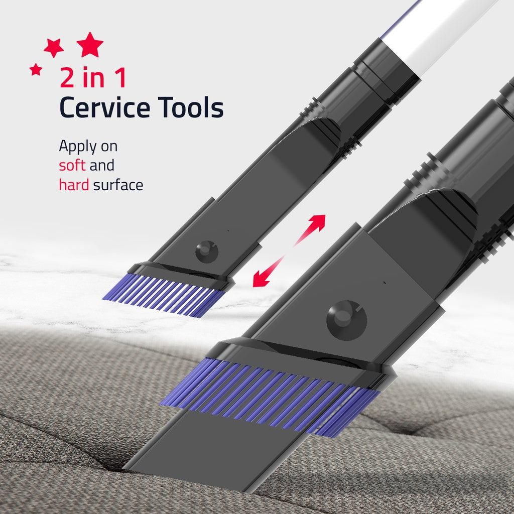 Vacuum Cleaner features an adjustable extension tube, making it suitable for people of different statures and cleaning methods. Plus, the flat mouth crevice tool included is perfect for narrow gaps and tight spaces, ensuring that no corner is left uncleaned.