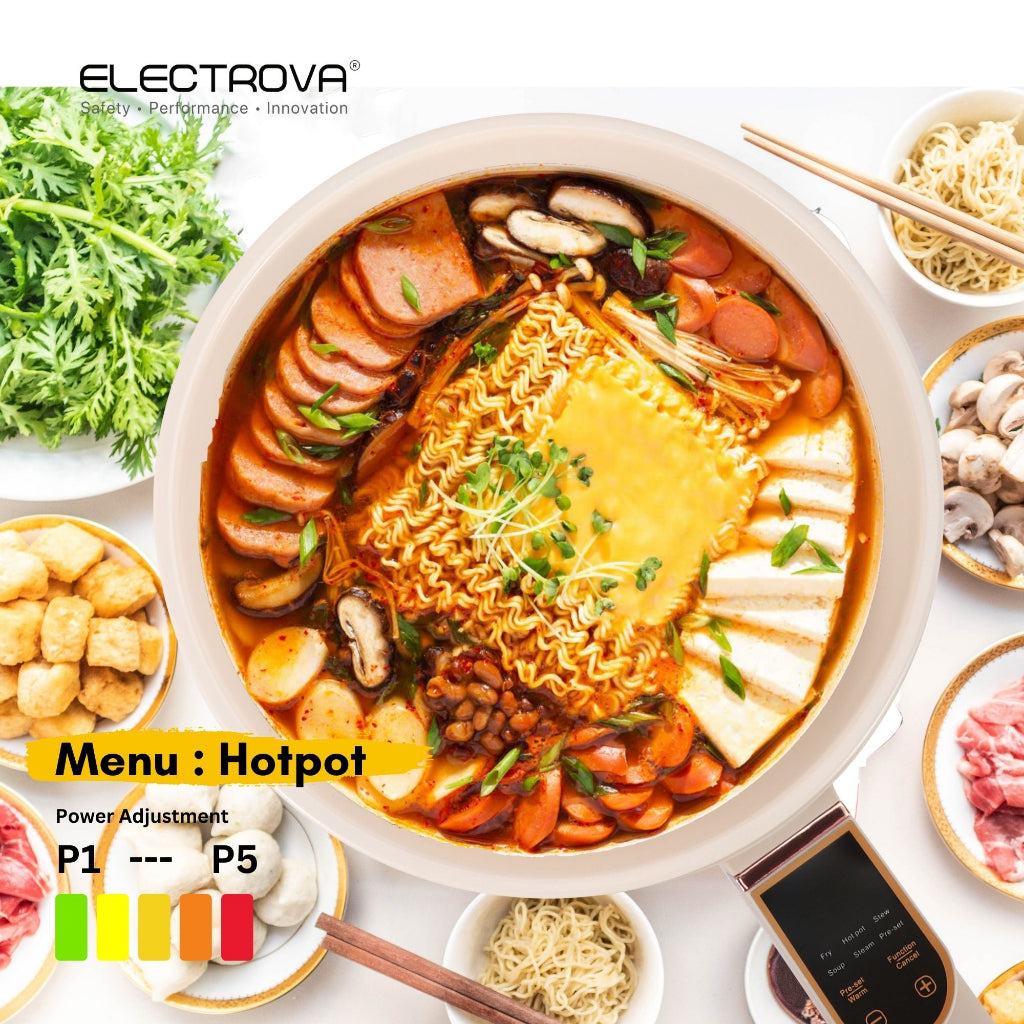 : This innovative multi-cooker is designed to take your cooking experience to the next level by providing you with unmatched versatility and convenience. Featuring 5 Pre-Set menu options including Fry, Hotpot, Stew, Soup, and Steam, this multi-cooker is designed to meet a wide range of cooking needs. With adjustable heating power (P1-P5) for Fry & Hotpot and customizable cooking times (01-99mins) for Stew, Soup and Steam, you can easily prepare your favorite meals with just the touch of a button.