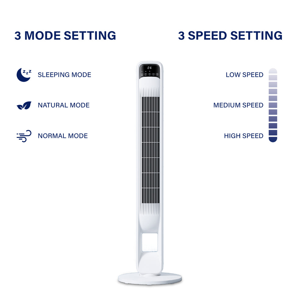 : This bladeless tower fan features 3 airflow modes - normal, natural, and sleep. You can personalize the cooling effects according to your needs, plus 3 speed settings, varying from low to medium and high to control the wind power and have the ultimate cooling experience during the hot days.