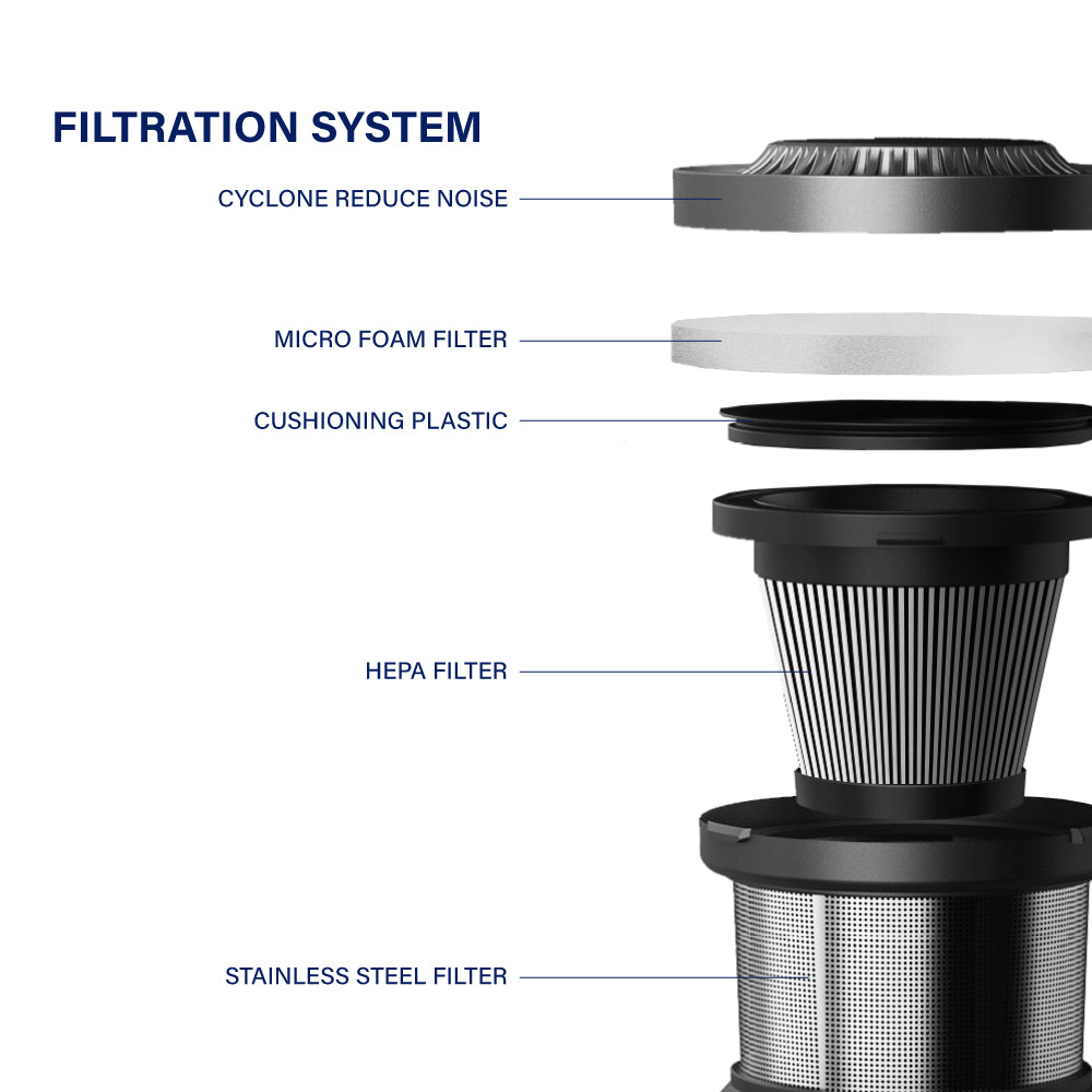 The iTech Motorized Big Roller Soft Floor Brush is the perfect solution for anti-hair tangle and to pick up the finest dust particles from hard and soft floors. The iTech Dust Cup is easily dismantlable for easy cleaning of the filtration system. A custom-made brush has been provided to keep the filtration system hygienic and free from blockages by cleaning the finest dust particles from the HEPA filter.