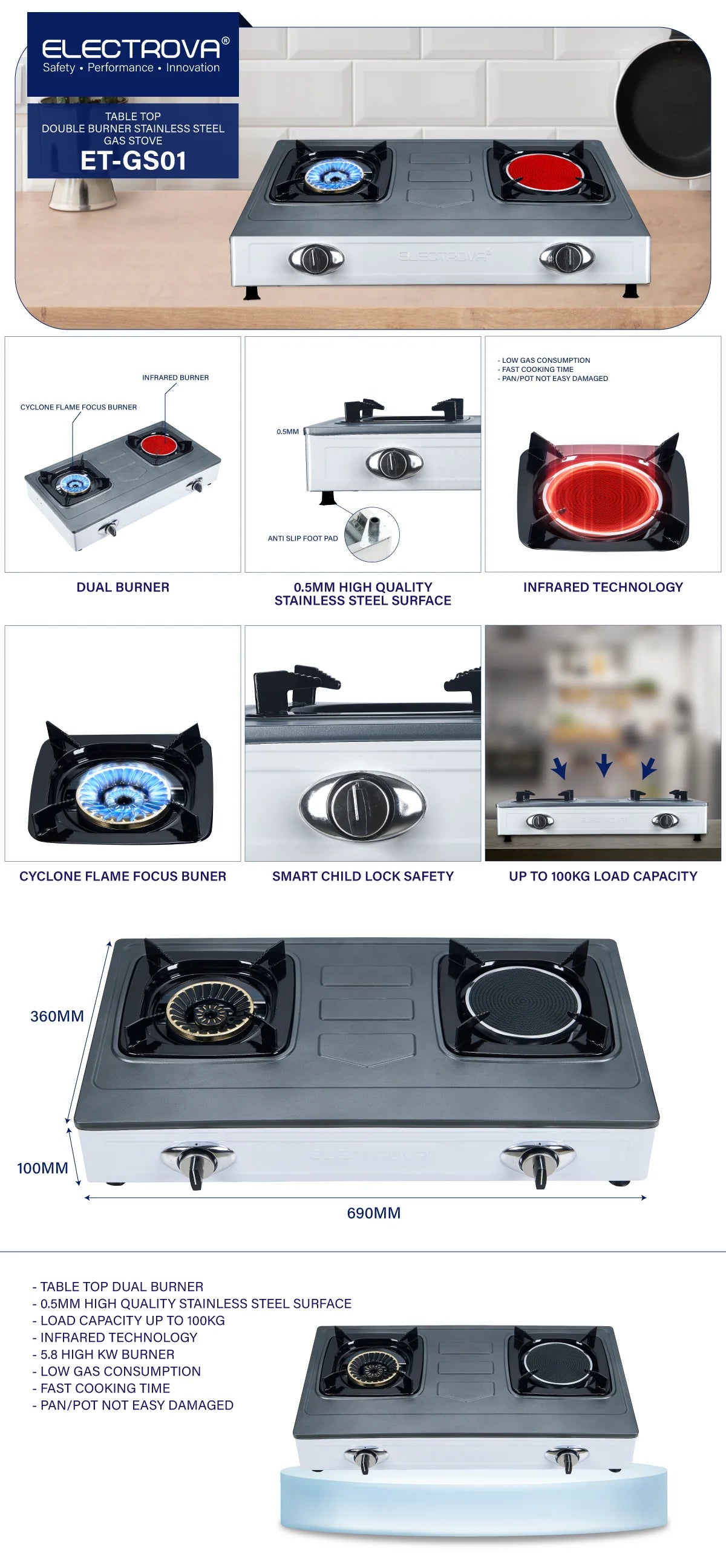Electrova Table Top Stainless Steel Gas Stove ET-GS01