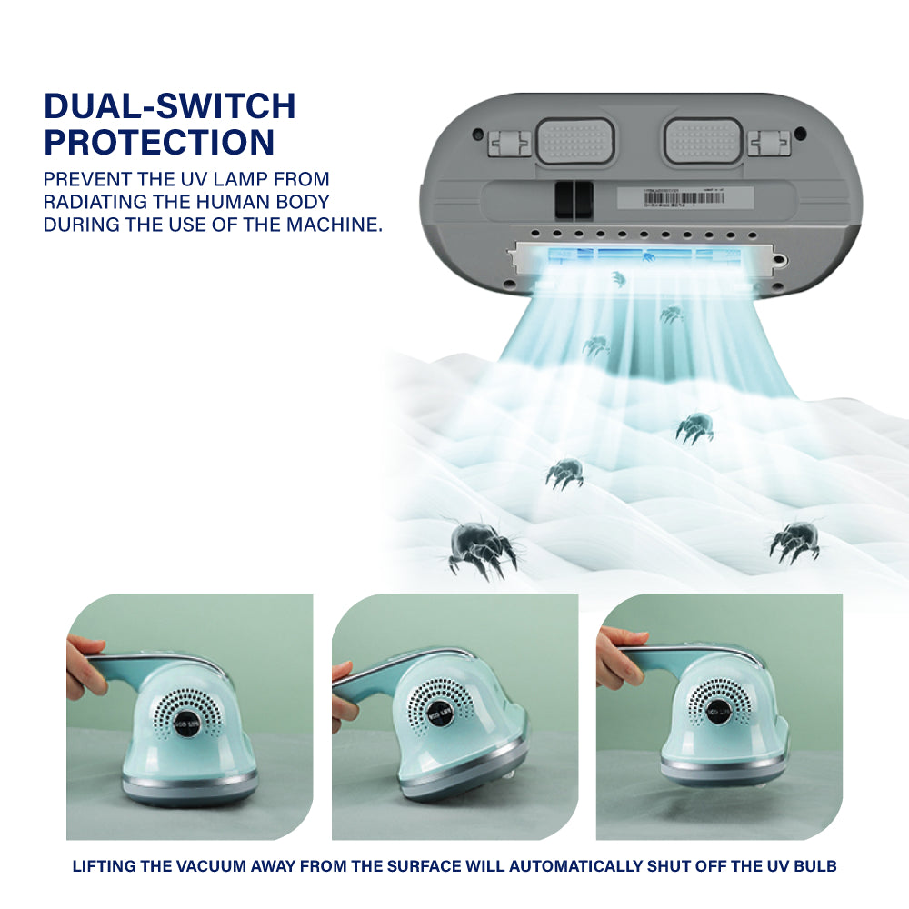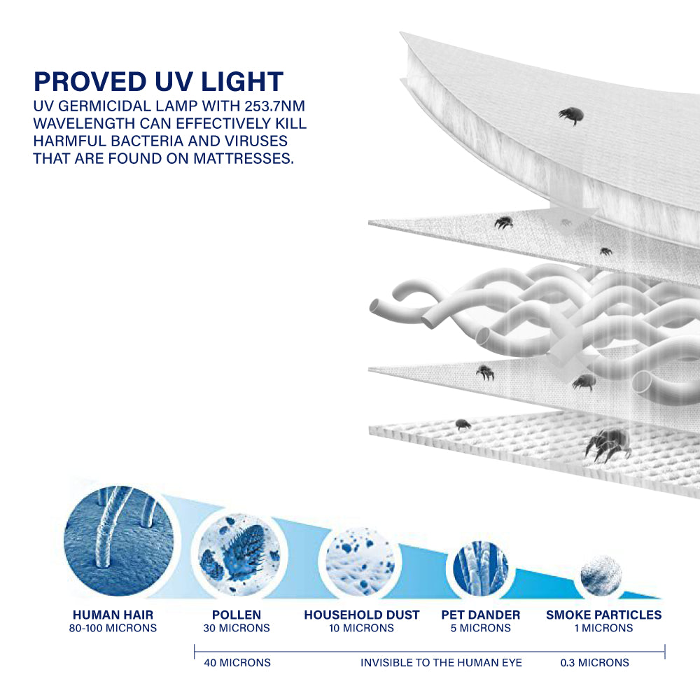 This cleaning tool comes equipped with a UV germicidal lamp that emits a wavelength of 253.7nm, which is effective in killing harmful bacteria and viruses that may be found on your mattresses. By doing so, it helps to ensure that your sleeping area is clean and free from harmful germs and bacteria. With this feature, you can trust that the cleaning tool is doing its job to provide you with a healthier and more hygienic environment to sleep in.