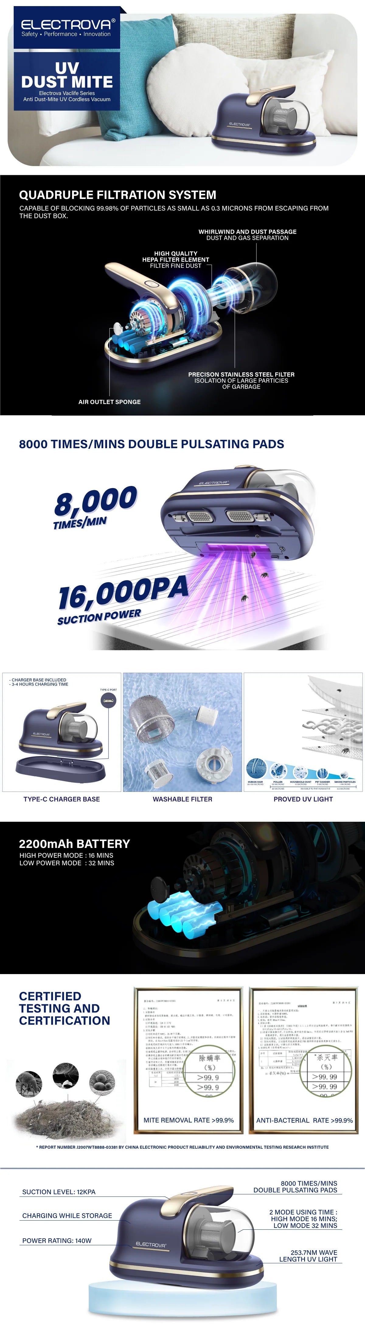 Electrova Vaclife Series Cordless UV Mite Remover Vacuum Cleaner