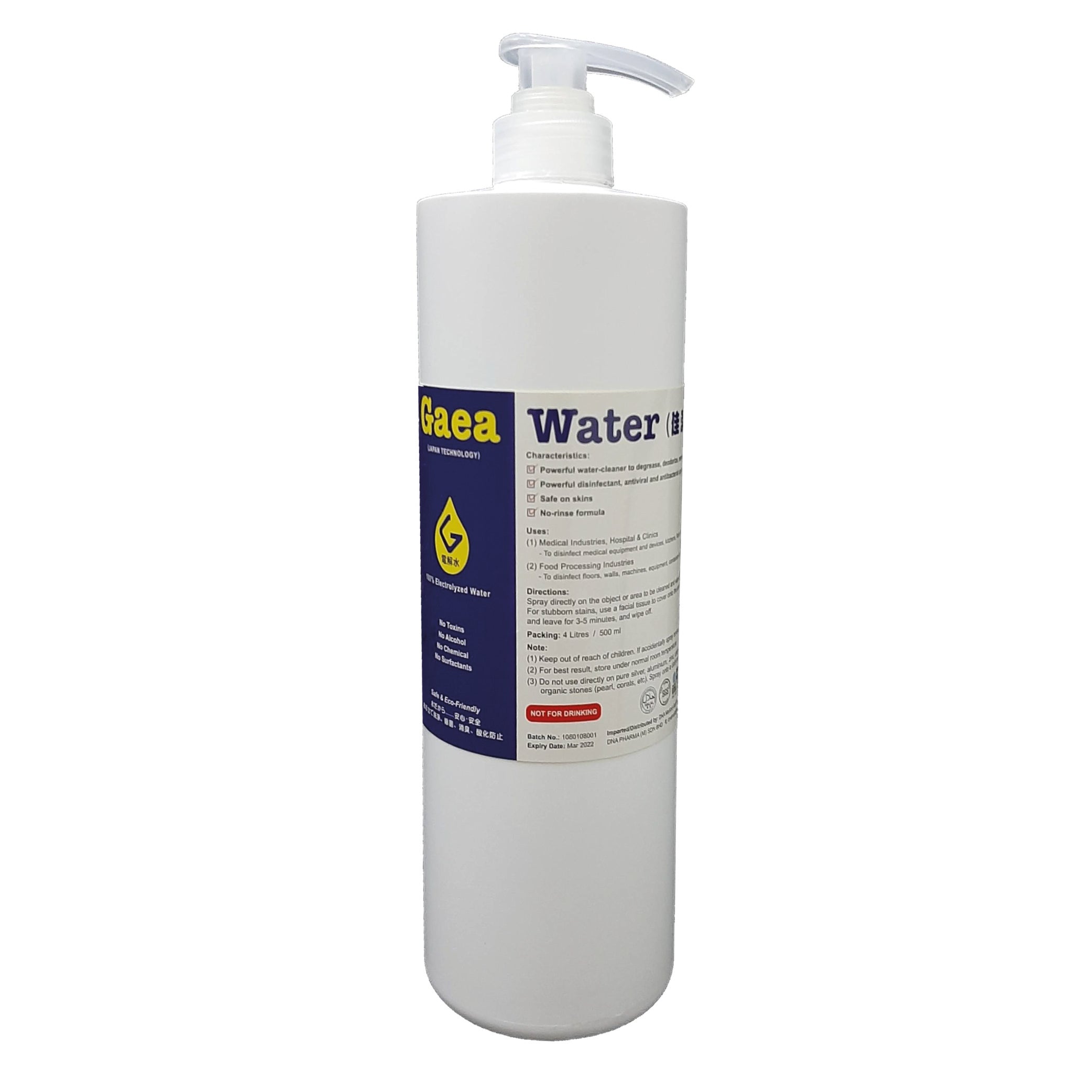 GAEA Water is made of pure water and does not contain harmful chemicals. To prove its safety, we have done many third party tests including skin irritation test, eye irritation test, and oral toxicity test.