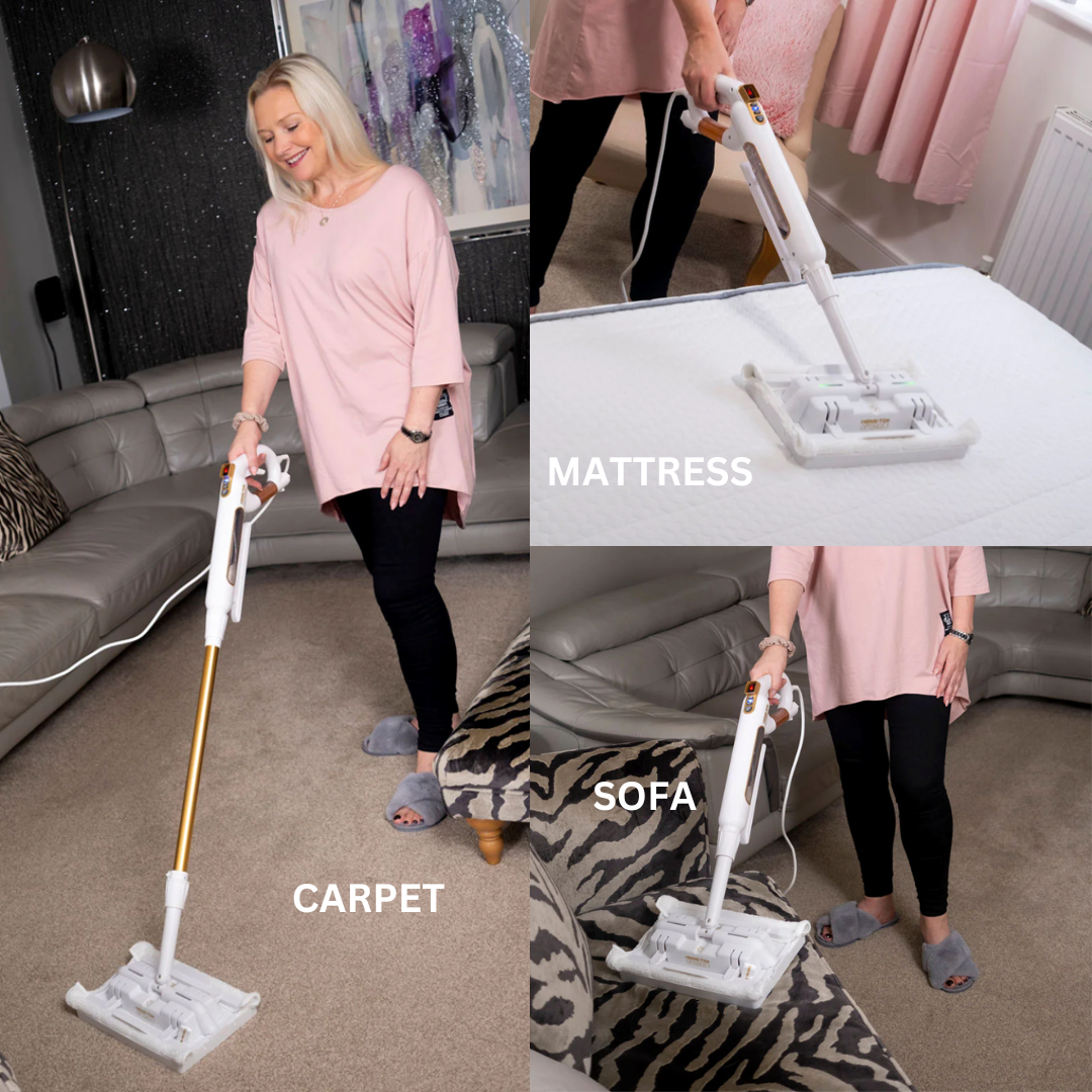 This steam mop is ready to use in less than 30 seconds and features a large head with our specially designed washable microfibre pads which lock in all the dirt from your floor surfaces. The unique patented handle design features an easy-fill water tank with an anti-calcium cartridge system which removes limescale in hard water areas.