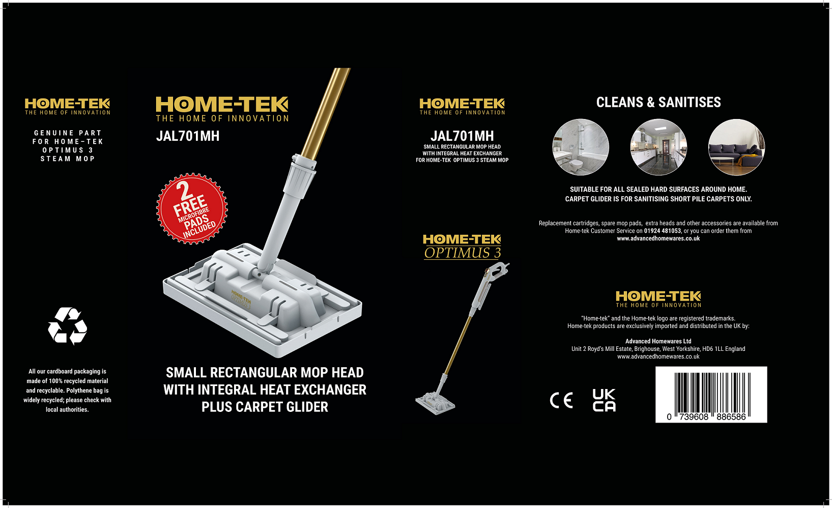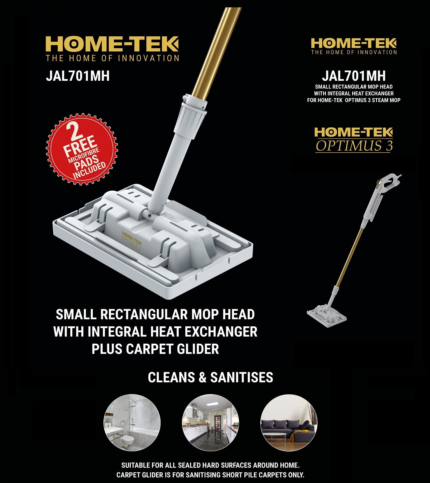 HOME-TEK Optimus 3 Small Rectangular Mop Head with Integral Heat Exchanger Plus Carpet Glider - Model JAL701MH ( without host )