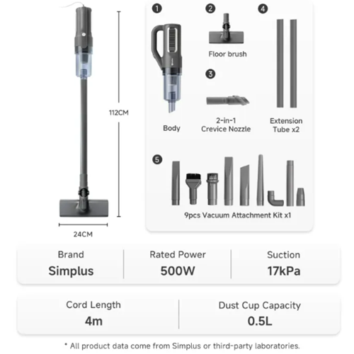 Simplus Corded Vacuum Cleaner 011-9-piece Set-Gray