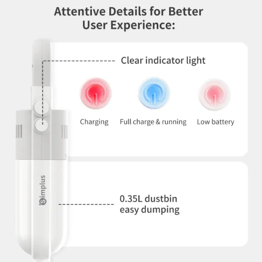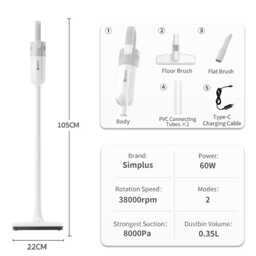 Simplus Cordless Vacuum Cleaner 012-65W-4000mAh-White-Charging Cable Included-USB-C Interface