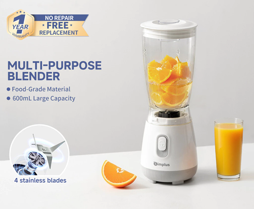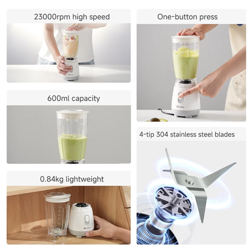 Simplus Food Processor/ Single Blender 600ML- White & Light Grey