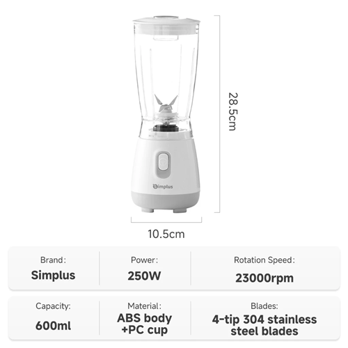 Simplus Food Processor 004-Single Cup with Cross-shaped Blade-600ML-250W-White & Light Grey