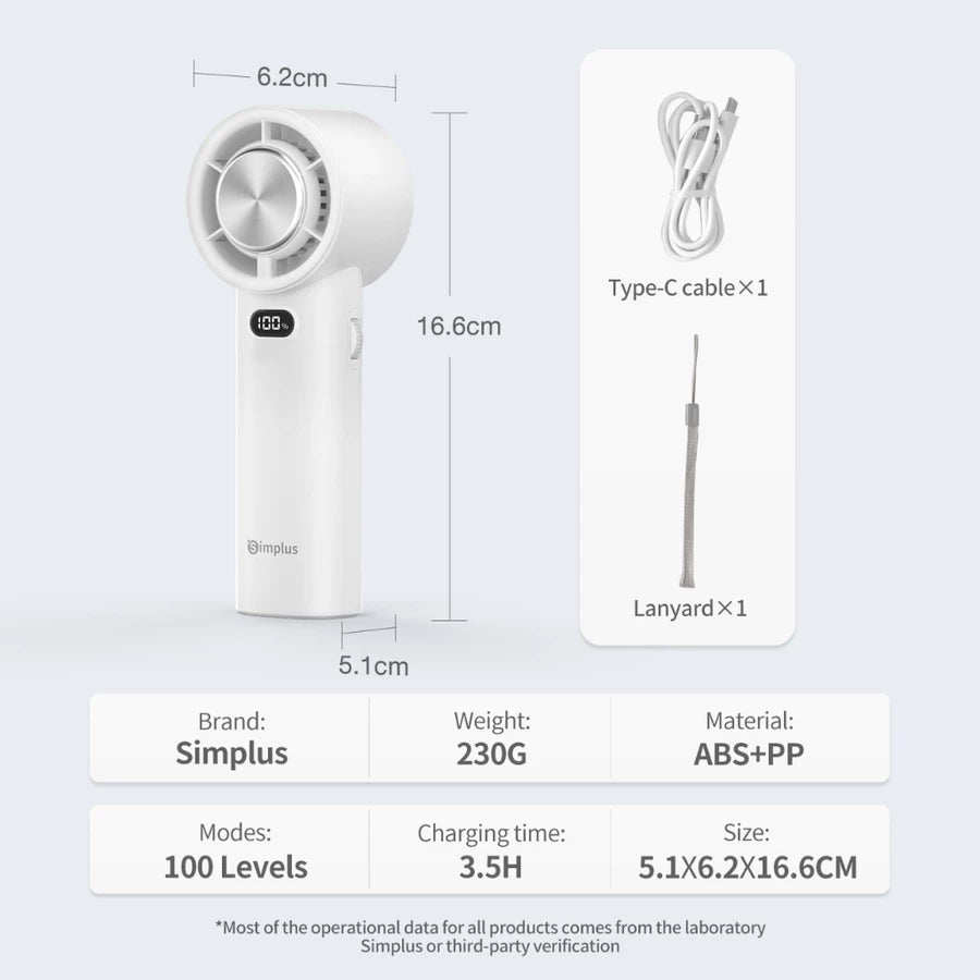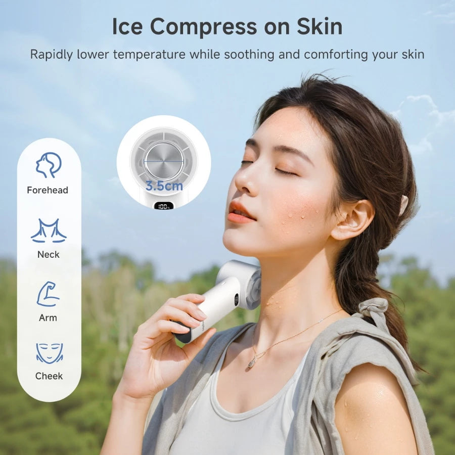 Handheld High-Speed Cold Compress Mini Fan 013-4000mAh-White-Charging Cable Included-USB-C Interfac