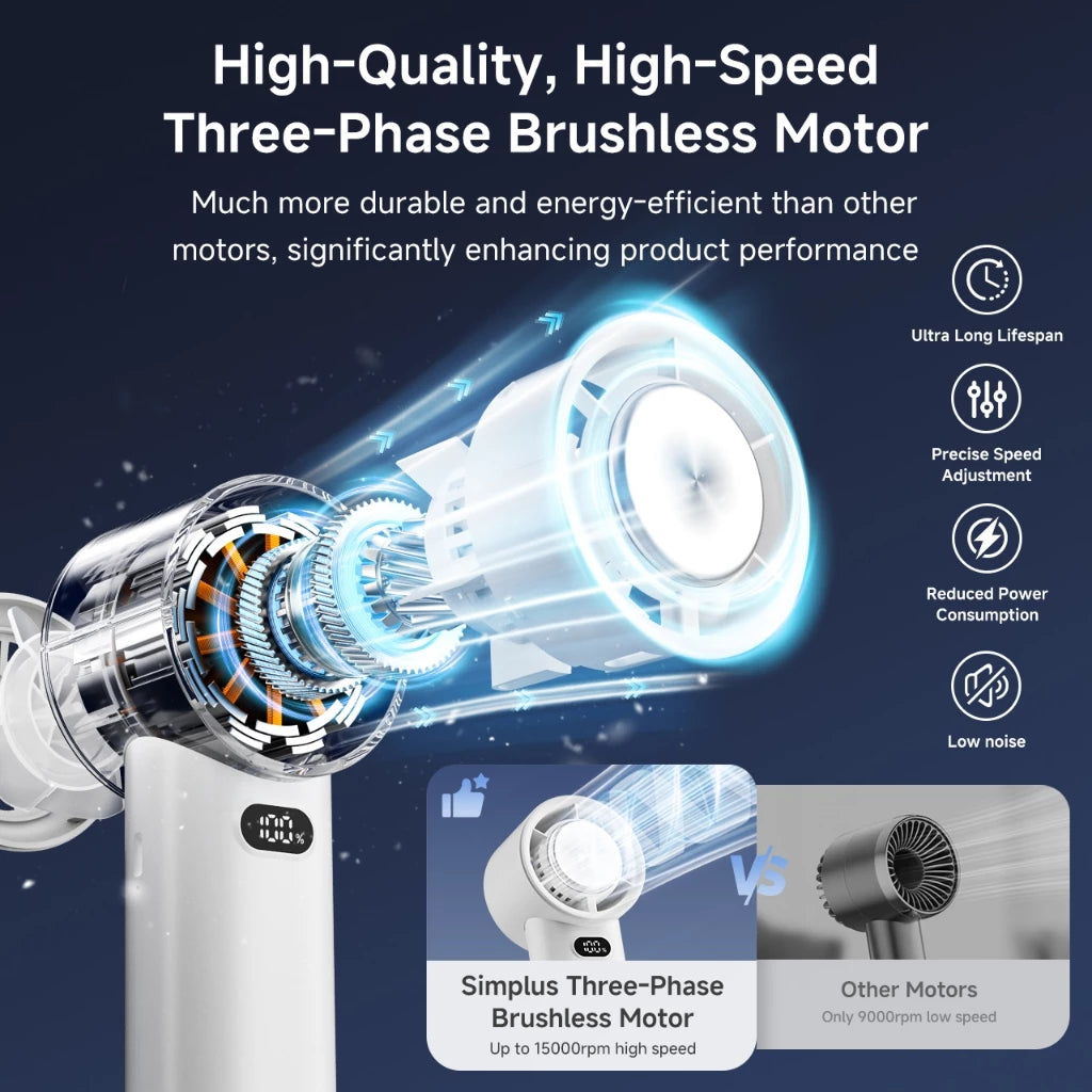 2. 10m/s max wind speed, 13000rpm powerful 3-phase brushless motor, 100 adjustable levels.